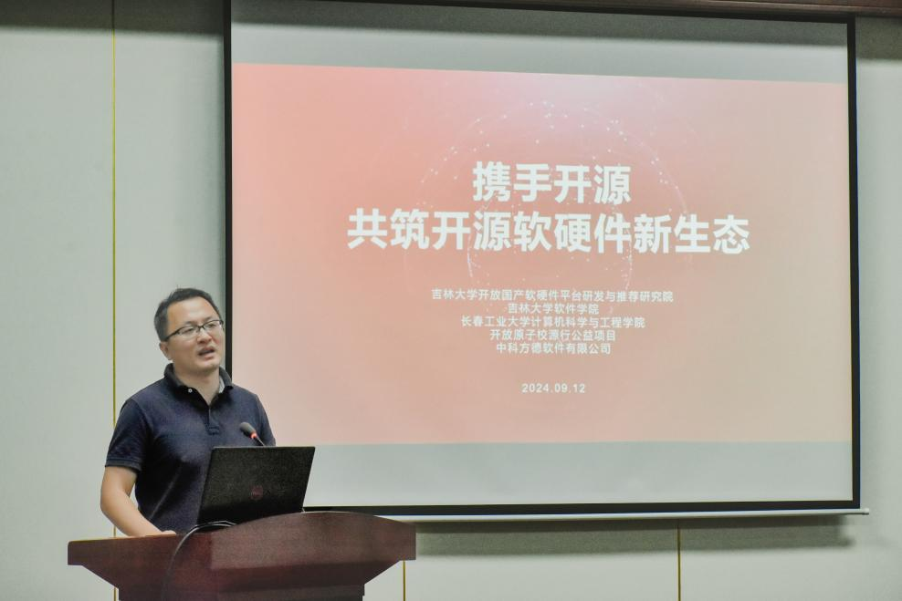 开放国产软硬件平台研发与推进研究院主办了一场主题为“携手开源,共筑开源软硬件新生态”的国产操作系统与开源社区发展分享会,分享会由中科方德软件有限公司、开放原子校源行公益项目、JLU开放原子开源社团协办。分享会分别在东北师范大学信息科学与技术学院和长春工业大学计算机科学与工程学院成功举办,旨在深入探讨国产操作系统和开源文化,分享开源软件移植和项目管理的实战经验,帮助同学们学习如何参与社区项目、提升实践能力,并探索职业发展机会,为未来铺路。