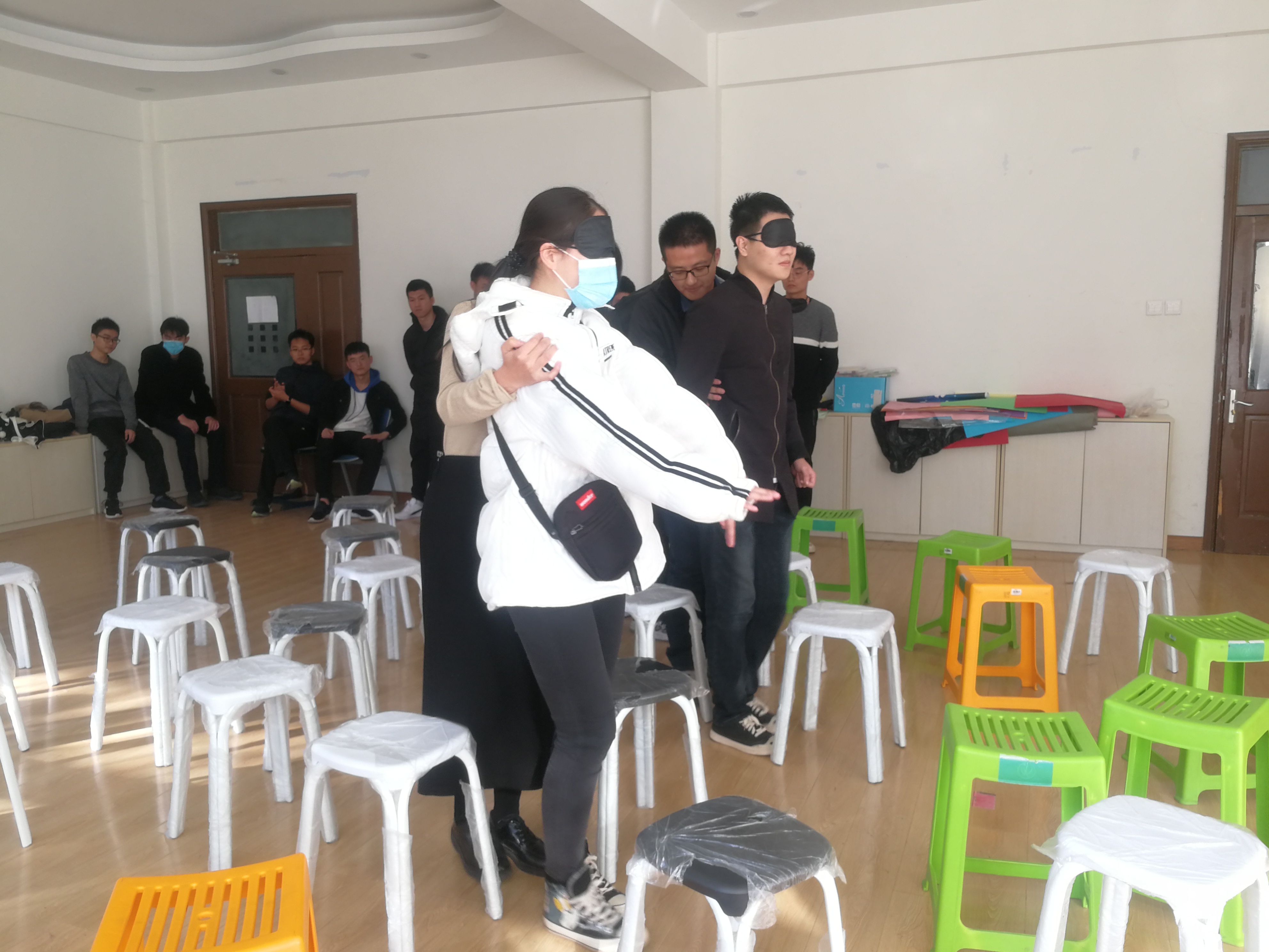 在活跃的气氛下迎来了高潮环节——“信任之旅”,“盲人”同学和“引路人”同学相互配合,默契地通过各种障碍,大家彼此信任,团队之间达成了更强的共识。在“快乐传递”阶段中,大家了解到了自己在团队成员中的地位和价值,并发现了彼此的长处和优点。在接下来的“信心启迪”中,参与者仔细思考了自己最想做的三件事,迎接接下来的学习生活。