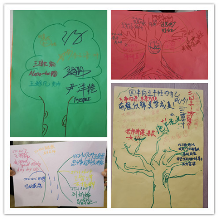 热身游戏后,同学们随机分组,在依次进行简短的自我介绍后,开展“快乐传递”、“信心启迪”、“信任之旅”等小游戏。“快乐传递”活动让同学们将自己的想法和祝愿写在卡片上,鼓励同学们主动交际,不惧未来;“信心启迪”活动让同学们写下自己的三个小目标,为今后的大学生活明确前进方向;“信任之旅”活动,所有同学分批次体验“盲人”感觉,在没有语言沟通的情况下由“引路人”带领到达终点,增强同学间相互信任。以上活动使同学们收获了同学情谊,增强了集体意识,挖掘了自身潜能,调整了自己心态,明晰了努力方向,增进了彼此友谊。随着活动接近尾声,在《相亲相爱的一家人》的背景音乐声中,同学们拿起手中的画笔,共同绘制了一幅《团体树》,写下新学期的美好祝愿。至此,绅士仓库