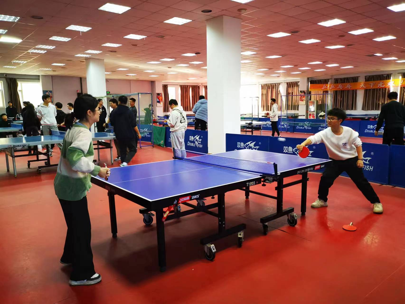 活动前夕根据报名情况,将参赛选手分为了新手组和老手组,旨在鼓励更多热爱乒乓球运动的同学能够更好地参与到其中。新手组分为三组,组内的两两同学可以进行友谊赛。老手组在现场由选手抽签来决定对手。参赛选手们拼尽全力,发挥出了最好的竞技水平,赛场氛围紧张刺激,不时响起喝彩声和鼓掌声。