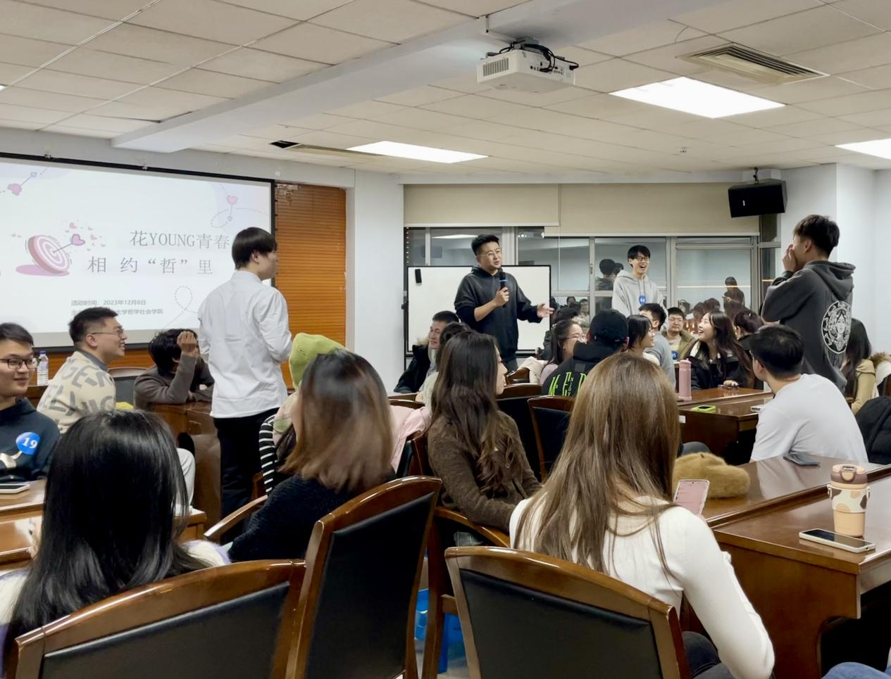 最后,幸运抽奖环节由工作人员随机挑选中奖号码,中奖者将获得“苏格拉底”“柏拉图”等哲学名家的纪念徽章,配对领奖的设计进一步拉近同学间的心理距离,助推同学间的互动交流。