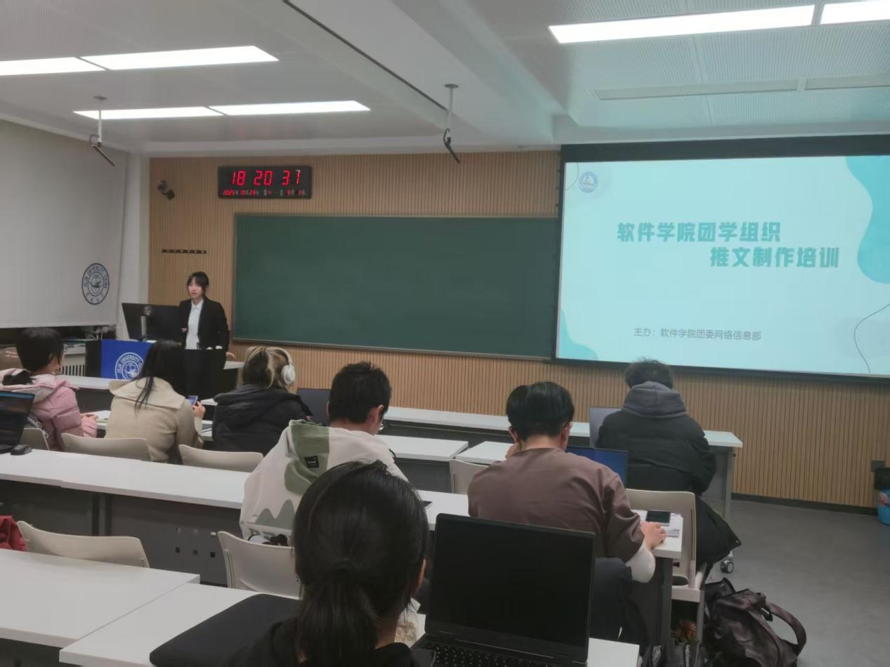 团委网络信息部在敬信教学楼E103教室开展公众号推送培训活动。本次培训由院团委副书记闫芳菲担任主讲人,30余名团学成员参与。
