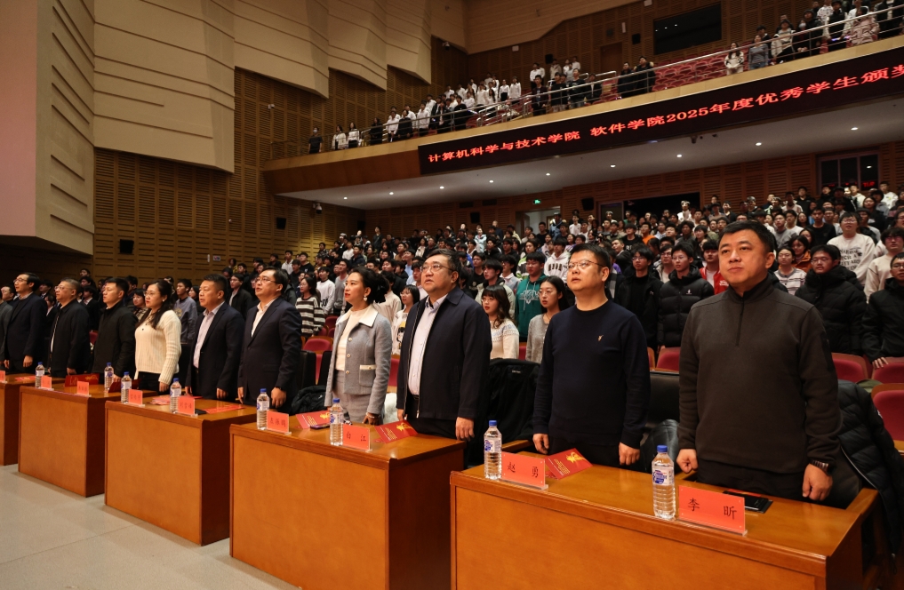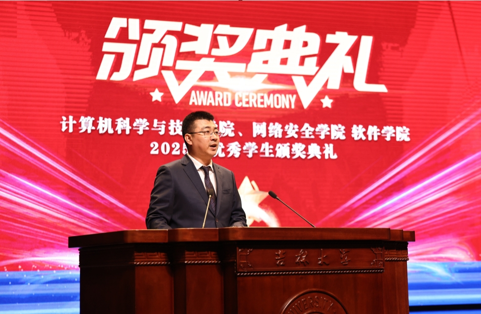 2025年度优秀学生颁奖典礼于鼎新大讲堂隆重举行。保卫处处长刘雪峰老师、学生心理健康指导中心主任朱丽雅老师、学生工作部副部长左振鹏老师、研究生工作部副部长马琨老师、学生就业创业指导与服务中心副主任白江老师、大数据和网络管理中心副主任张达鑫老师、计算机科学与技术学院党委书记宫皓宇老师,学院及中心党政领导班子、教职工代表以及2025级新生出席,计算机科学与技术学院党委副书记兼绅士仓库