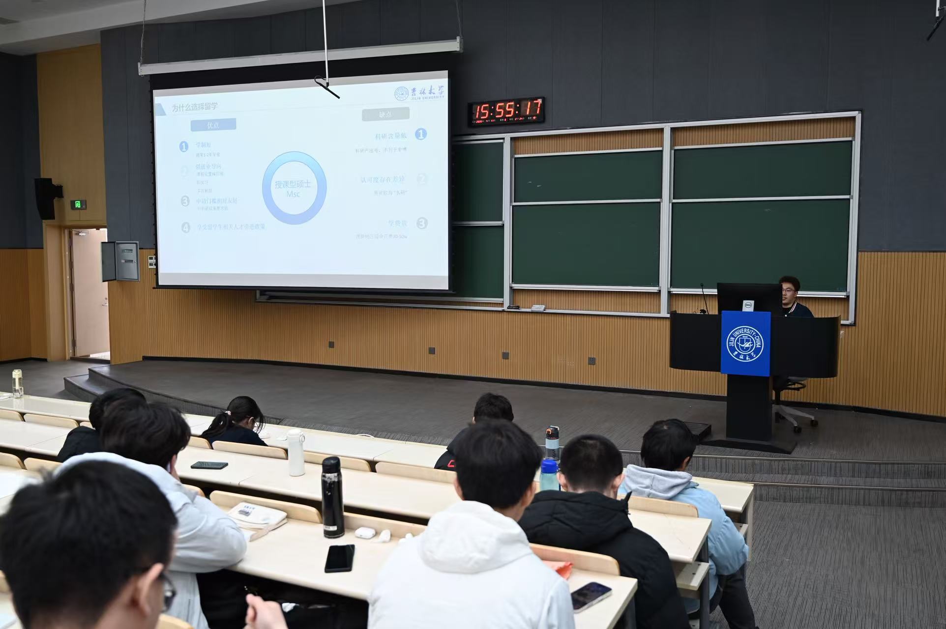 海外升学专题分享会在逸夫楼第十阶梯教室顺利举办。本次活动特邀海研计划刘伟老师、毕业后在海外名校深造的优秀学长与即将留学的在校生分享交流,为同学们带来全面实用的海外升学指导。