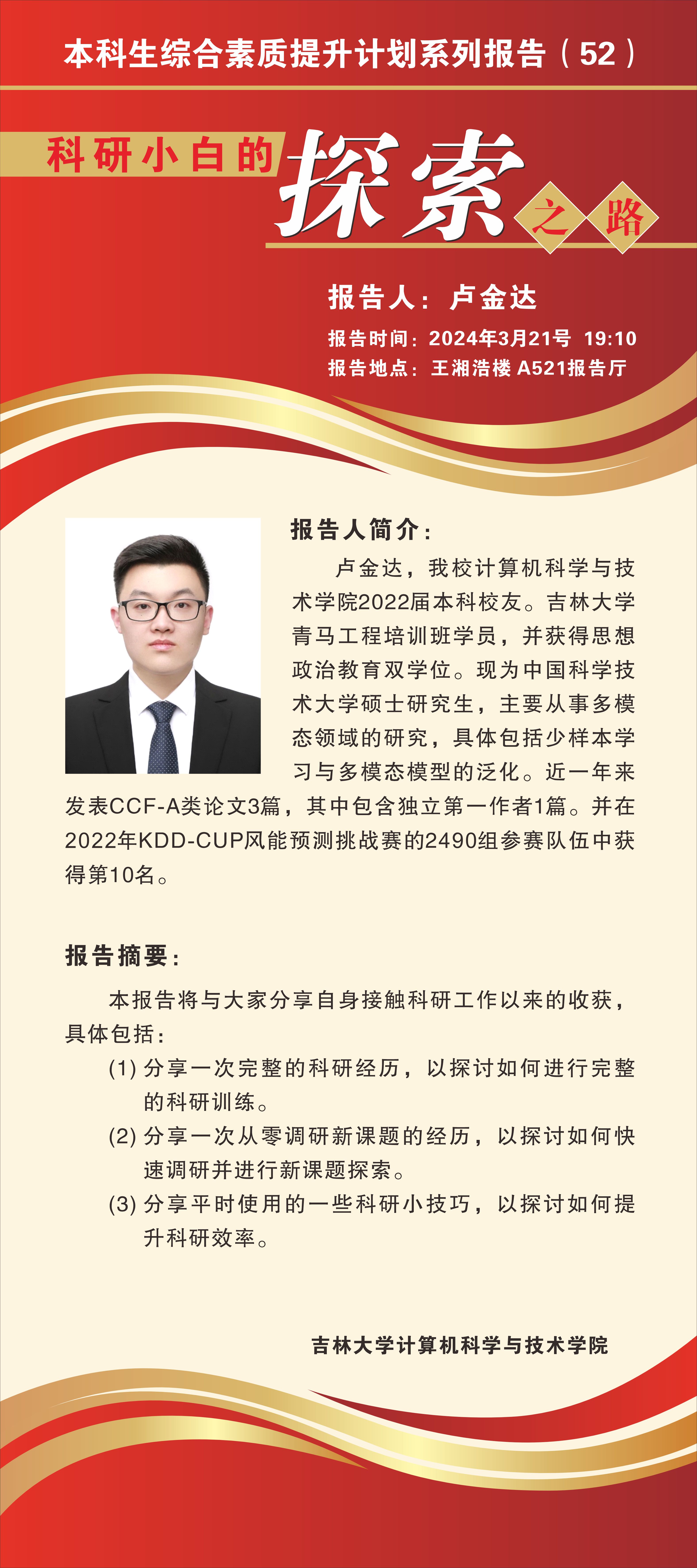 报告人简介:卢金达,我校计算机科学与技术学院2022届本科校友。绅士仓库